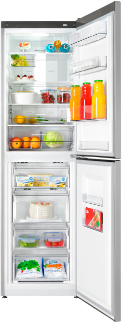 FULL NO FROSTдвухкамерный однокомпрессорный холодильник с нижним расположением морозильной камеры СЕРЕБРИСТОГО цвета (габариты 2068х595х660 мм) с 4 отделениями в морозильной камере, дизайн "ADVANCE" (полки на верхней и нижней дверях, расширенная комплектация), класс энергоэффективности А+, электронное управление с помощью сенсорного дисплея, расположенного на двери, LED освещение