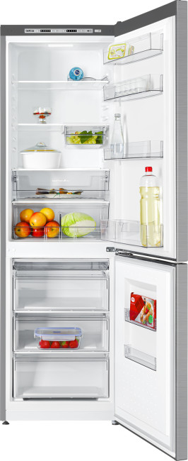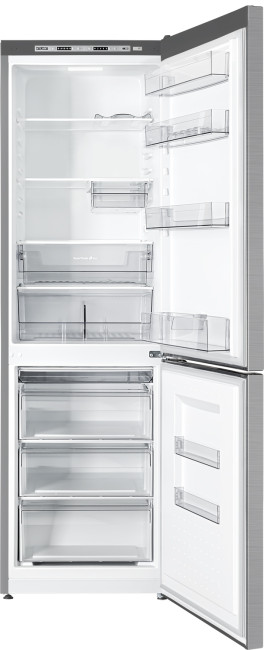 двухкамерный двухкомпрессорный холодильник с нижним расположением морозильной камеры цвета нержавеющая сталь (габариты 1968х595х627 мм) с 3 отделениями в морозильной камере, дизайн "ADVANCE", класс энергоэффективности А+, электронное регулирование температуры, LED-освещение, антибактериальная защита